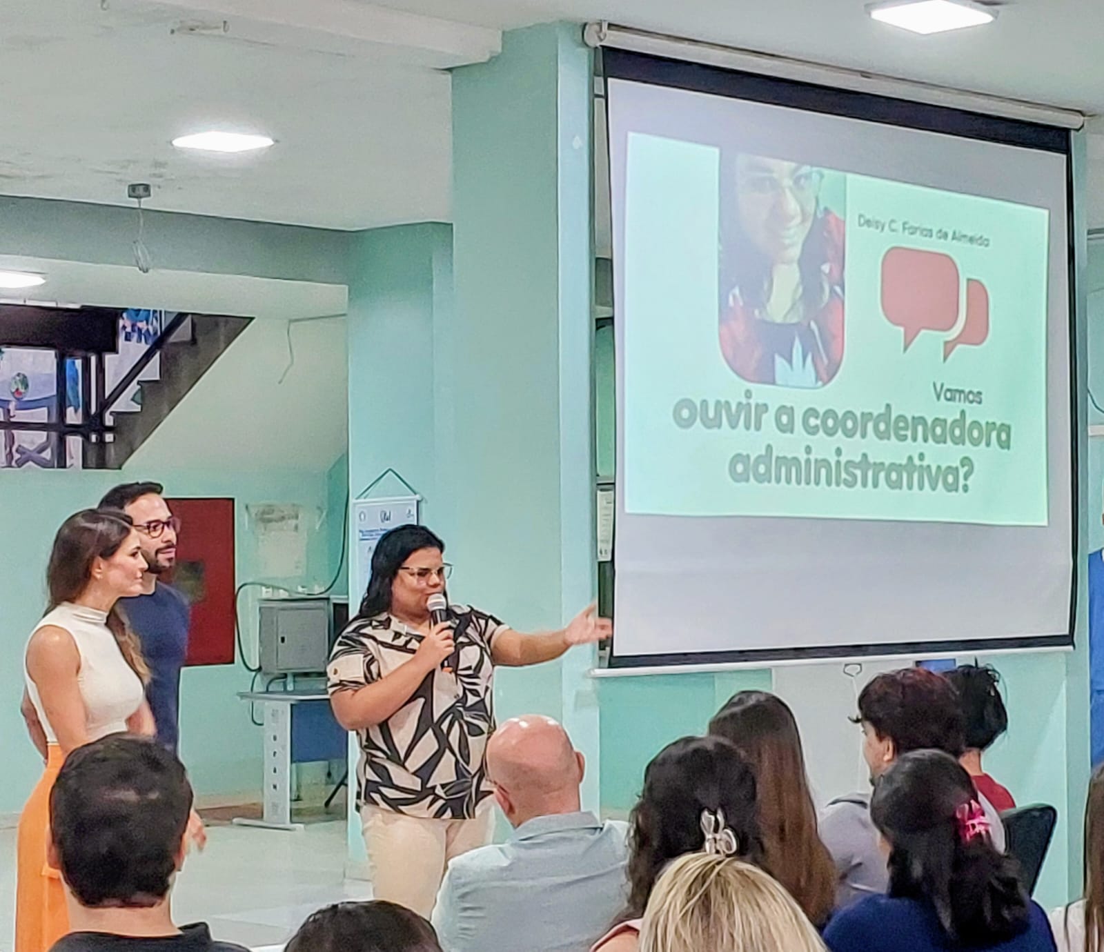 Em continuidade, a coordenadora administrativa, Deisy Carloane Farias de Almeida, ao apresentar os técnicos administrativos em educação da FAO e recepcionar os calouros, frisou que corpo administrativo está à disposição para o que os estudantes necessitarem.